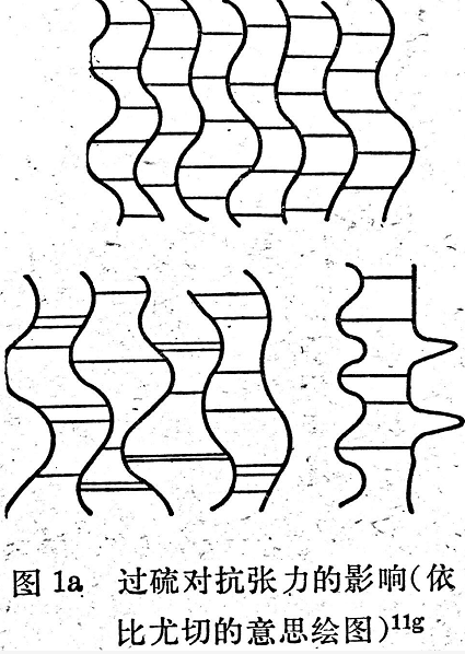 伸時(shí)變得比較堅(jiān)強(qiáng)的能力。在沒(méi)有取向結(jié)晶的橡膠中,因過(guò)交聯(lián)而使抗張強(qiáng)度下降的程度就比較小。必須進(jìn)一步加入硫黃,使鏈上所有能夠交聯(lián)的位置都已與硫黃結(jié)合,才能達(dá)到前所未有的強(qiáng)度,但扯斷伸長(zhǎng)難免大幅度下降。在這一階段,抗張強(qiáng)度來(lái)自純化學(xué)鍵,結(jié)晶現(xiàn)象不復(fù)存在。