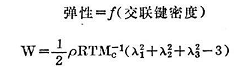 方程式2中,W是彈性,p為橡膠密度,R是氣體常數(shù),T為絕對(duì)溫度,M是兩個(gè)交聯(lián)鍵之間橡膠分子的平均分子量。A1、2和λ3是試片在三個(gè)坐標(biāo)上拉伸與未拉伸邊緣長(zhǎng)度之比。方程式2與方程式1同樣表明彈性體彈性主要依賴于交聯(lián)鍵數(shù)目而與交聯(lián)鍵的化學(xué)性質(zhì)無(wú)關(guān)。