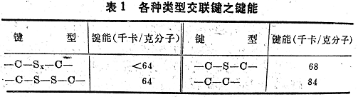 有些交聯(lián)鍵形成之后,在繼續(xù)硫化中也會因硫化熱的作用而重新斷裂。由于硫交聯(lián)鍵的鍵能較烴鏈鍵能小(見表1),在只有絕氧條件下的熱裂解(例如發(fā)生在制品平板加壓硫化)時,將主要產(chǎn)生交聯(lián)鍵斷裂。斷裂的交聯(lián)鍵主要是游離基性質(zhì)的,它們能形成新的交聯(lián)鍵或者常常發(fā)生分子內(nèi)部反應(yīng)(即產(chǎn)生環(huán)化作用)。