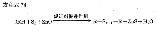 用促進(jìn)劑的硫黃硫化,其交聯(lián)過程可概括如下(見方程式74,RH為橡膠鏈)