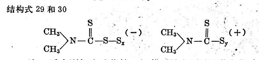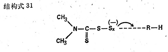 同樣,關(guān)于二烷基多硫代氨基甲酸鹽的反應(yīng)也曾用游離基反應(yīng)機(jī)理進(jìn)行過討論(見方程式88~93)。