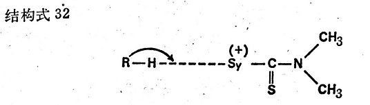 第二個反應(yīng)是烴的氫作為氫離子轉(zhuǎn)移到一個多硫化物陽離子上(見結(jié)構(gòu)式32)。