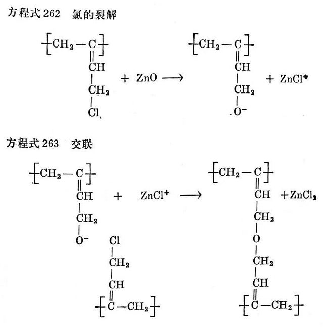 無金屬氧化物的基本交聯(lián)反應可以用方程式258來表示。如果加入金屬氧化物,它們能在某種程度上作為氯接受體參加反應。