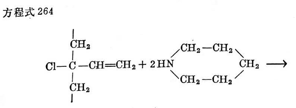 聚氯丁二烯膠乳用過量的哌啶,在80°C溫度下處理,能按下列方式進行反應(見方程式264)。