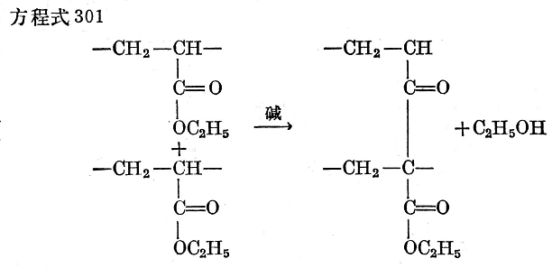 在有胺存在時(shí),交聯(lián)是由加堿引起的分子內(nèi)克萊森( Claisen)縮合引起的,同時(shí)放出乙醇(見方程式301)。