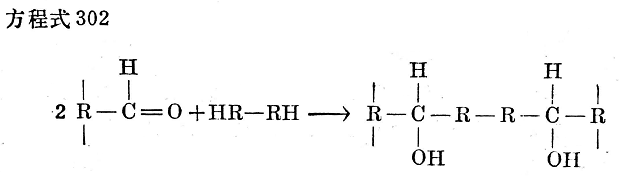 在有醛基的單體和具有活潑氫原子的單體中,膠料進(jìn)行自發(fā)交聯(lián)時(shí),其交聯(lián)過程與醇醛縮合或雪夫堿的生成相似(見方程式302)。