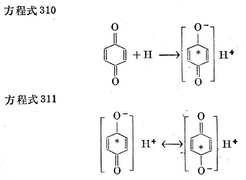 中間產(chǎn)物半醌具游離基性質(zhì),它在脫氫和醌的還原中起決定作用(見方程式310和311)。