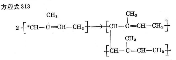這樣,在醌和橡膠的反應(yīng)中,形成相對穩(wěn)定的半醌游離基和極不穩(wěn)定的橡膠鏈游離基,后者在主要反應(yīng)期間,通過二聚作用導(dǎo)致交聯(lián)(見方程式313)。
