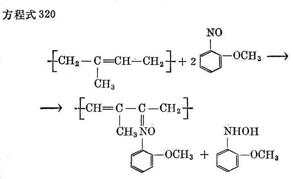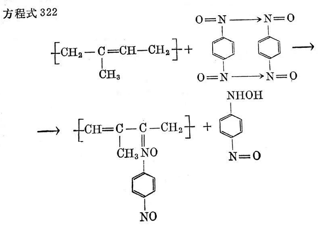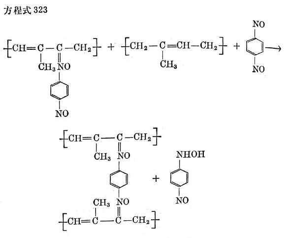 象雙官能化合物那樣,對二亞硝基苯能以方程式317的方式與兩個橡膠烴分子反應,從而發(fā)生交聯(lián)(見方程式322和323)。