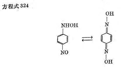 但亞硝基苯酚甲醚不能經(jīng)過互變異構(gòu)轉(zhuǎn)變?yōu)殡?因而容易象亞硝基衍生物那樣,通過在橡膠上的加成進行反應(見方程式320),相反,鄰醌二肟的形式不會產(chǎn)生這種反應。