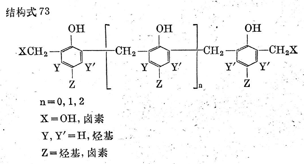 結(jié)構(gòu)式73中用字母Z代表鹵素的化合物因為鹵素的引入非常困難,所以沒有取得成功。在實際使用的樹脂中,Z代表烴基,如叔丁基或叔辛基。