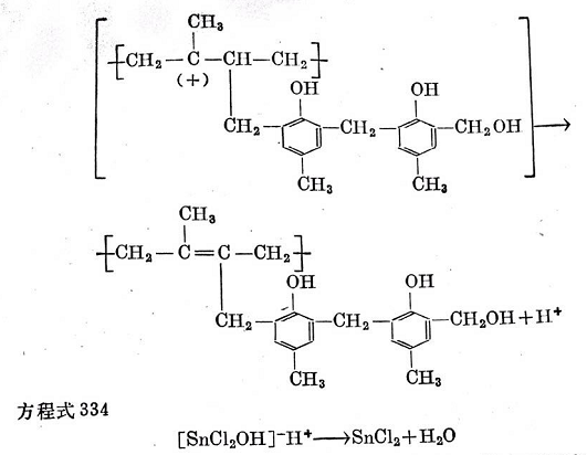 這些活性劑與弗瑞迪-克來福特( friedel- Craft)反應(yīng)的催化劑極相似。所以作者看來照弗瑞迪-克來福特反應(yīng)類推,就能得出下面的交聯(lián)反應(yīng)(見方程式331~334)。