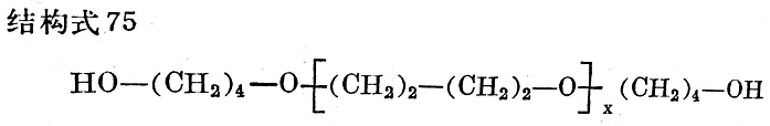 不用聚酯而用比如分子量在2000左右的四氫呋喃聚合物這樣的聚醚時(shí)°98,可以得到抗水解彈性體(見(jiàn)結(jié)構(gòu)式75)。