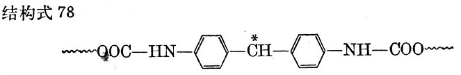 用過(guò)氧化物交聯(lián)時(shí),由于沿著整個(gè)鏈任意進(jìn)行,所以往往難于控制。如使用4,4-二苯基甲烷二異氰酸酯,就構(gòu)成容易活動(dòng)的鏈分子,然后主要在二苯基甲烷二異氰酸酯的次甲基上通過(guò)游離基產(chǎn)生交聯(lián)(見(jiàn)結(jié)構(gòu)式78)。
