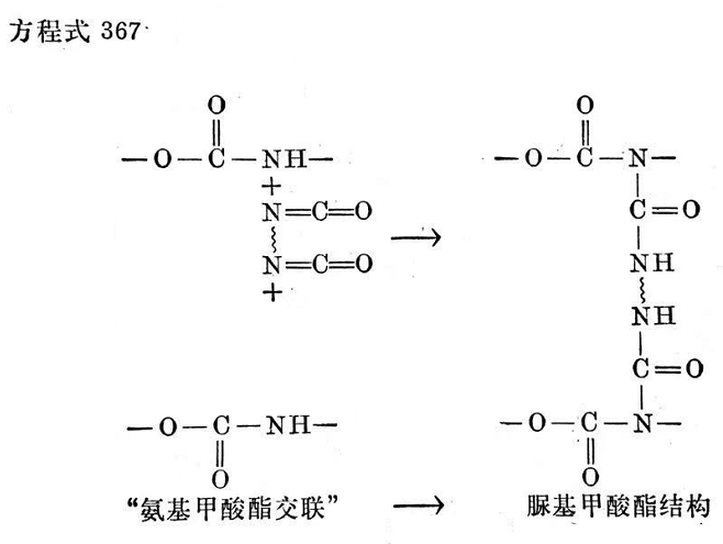 這時只通過氨基甲酸酯基形成鏈,而交聯(lián)則通過脲基甲酸酯基發(fā)生(見方程式367)。