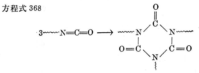 最后,異氰酸酯基也能以叔胺形式發(fā)生三聚作用(見方程式368)。