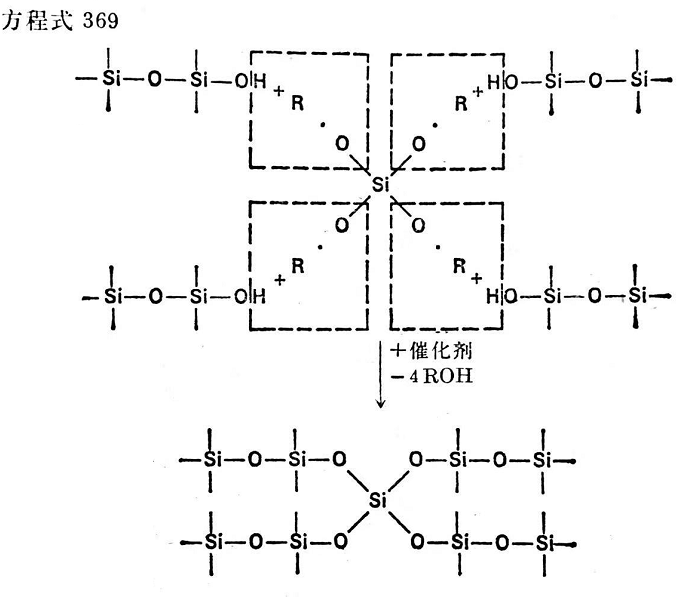 這一反應伴以產生交聯(lián),可用下列簡單的方程式表示(見方程式369)。