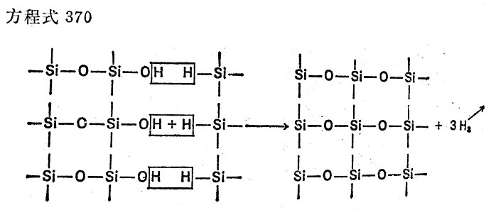 含羥基硅橡膠室溫硫化的另一方法是使用有機氫硅氧烷。使用這些交聯(lián)劑時由于產生氣體氫,所以無需另外加熱或另加特殊的發(fā)泡劑就能制造硅橡膠海綿。交聯(lián)反應可用以下簡化方程式表示(見方程式370)。
