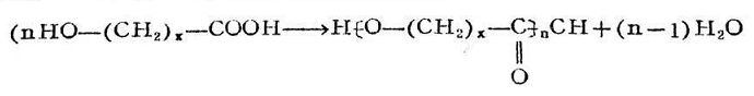 縮聚反應也是由許多相同或不同的低分子物質化合成高聚物的過程,但在反應過程中,同時,析出水、醇、氨、鹵化氫等其它低分子物質,所以生成的高聚物的結構單元與原料物質成分不相同。例如,一種有機醇酸可縮聚成聚酯: