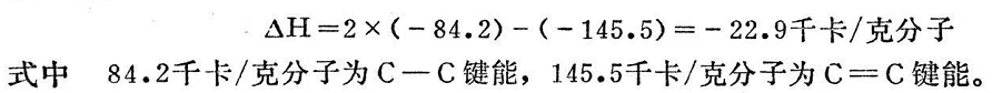 聚合反應(yīng)中熱始的変化,可通過反應(yīng)前后鍵能的變化求出(理論值),也可由參加聚合單體反應(yīng)前后生成熱的變化求出。因有聚合能力的單體都含有雙鍵,聚合后雙鍵打開,π鍵變成α鍵。
