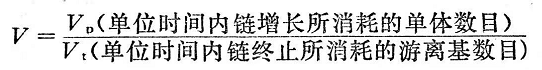 動力學(xué)鏈長的定義是每個鏈游離基從生(鏈引發(fā))到滅(鏈終止)的增長過程中,每個活性鏈上具有的單體分子數(shù)。也就是說動力學(xué)鏈長就是鏈游離基在鏈終止前的平均鏈長。設(shè)動力學(xué)鏈長為,則: