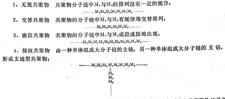 由兩種單體所組成的線型共聚物,從大分子鏈單體鏈節(jié)排列方式來(lái)說(shuō),可分為四類(lèi)。