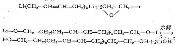 將上述活性聚合物與氧化乙烯、氧化丙烯或者與醛和副等反應(yīng),然后進(jìn)行水解,即可得到端羥基“遙爪”聚丁二烯液體橡膠: