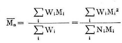 設高聚物試樣中的單體、二聚體、三聚體……i聚體的數目分別為N1、N2、N3……Ni;其各自分子量分別為M1、M2、M3…Mi,將每一分子數乘以其分子量后相加起來,然后除以所有分子總數即得數均分子量。即是分子量按照分子數分布函數N(M)的統(tǒng)計平均。故: