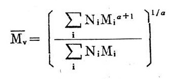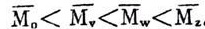 此處Mv的a值取0.6。由上面計算可見,當高聚物的分子大小不整齊時,其平均分子量有下列順序: