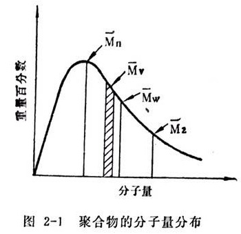 圖2-1是較典型的高聚物分子量分布和四種平均分子量的比較圖。