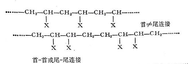 在第一章中曾提到,在聚合的鏈增長(zhǎng)反應(yīng)中,單體可以有多種連接方式。烯類單體因鏈增長(zhǎng)反應(yīng)方式的不同,可以得到首一尾連接方式的加成結(jié)構(gòu),也可以得到首一首、尾一尾連接方式的加成結(jié)構(gòu)。