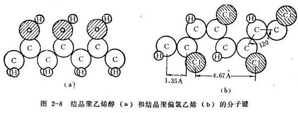 由于這些聚合物的分子結(jié)構(gòu)規(guī)整性很好,而其取代基有的空間位阻效應(yīng)不顯著(如聚乙烯醇中的一OH基),有的高聚物分子鏈上的取代基具有對(duì)稱性(如聚偏二氯乙烯)。所以這類高聚物都能很好地結(jié)晶。